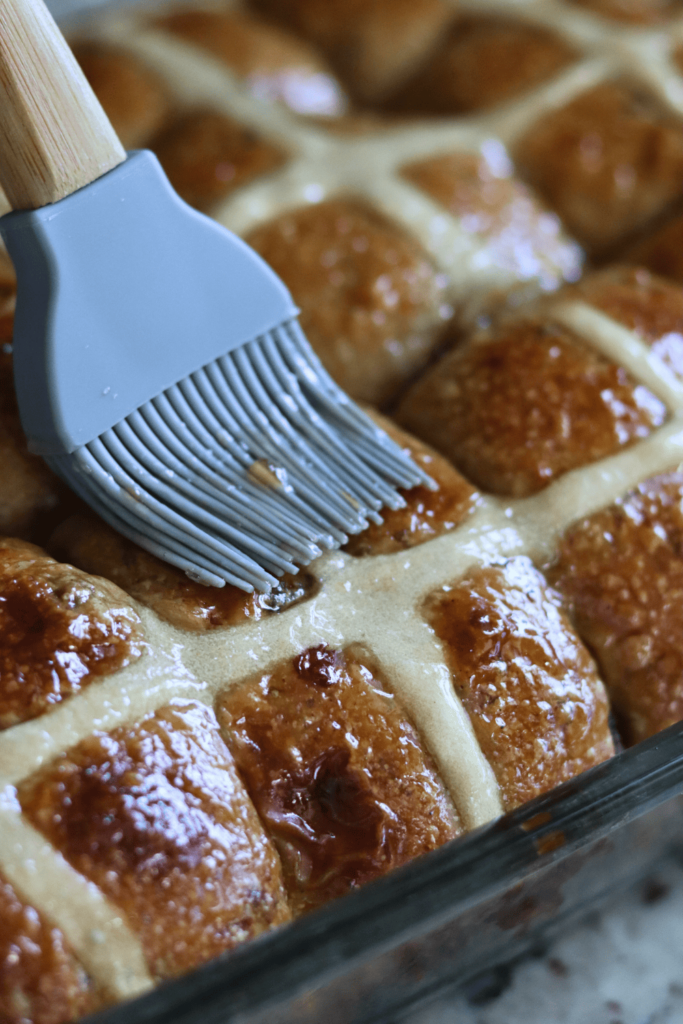 - Using a pastry brush, brush the top of the buns with the apricot glaze.